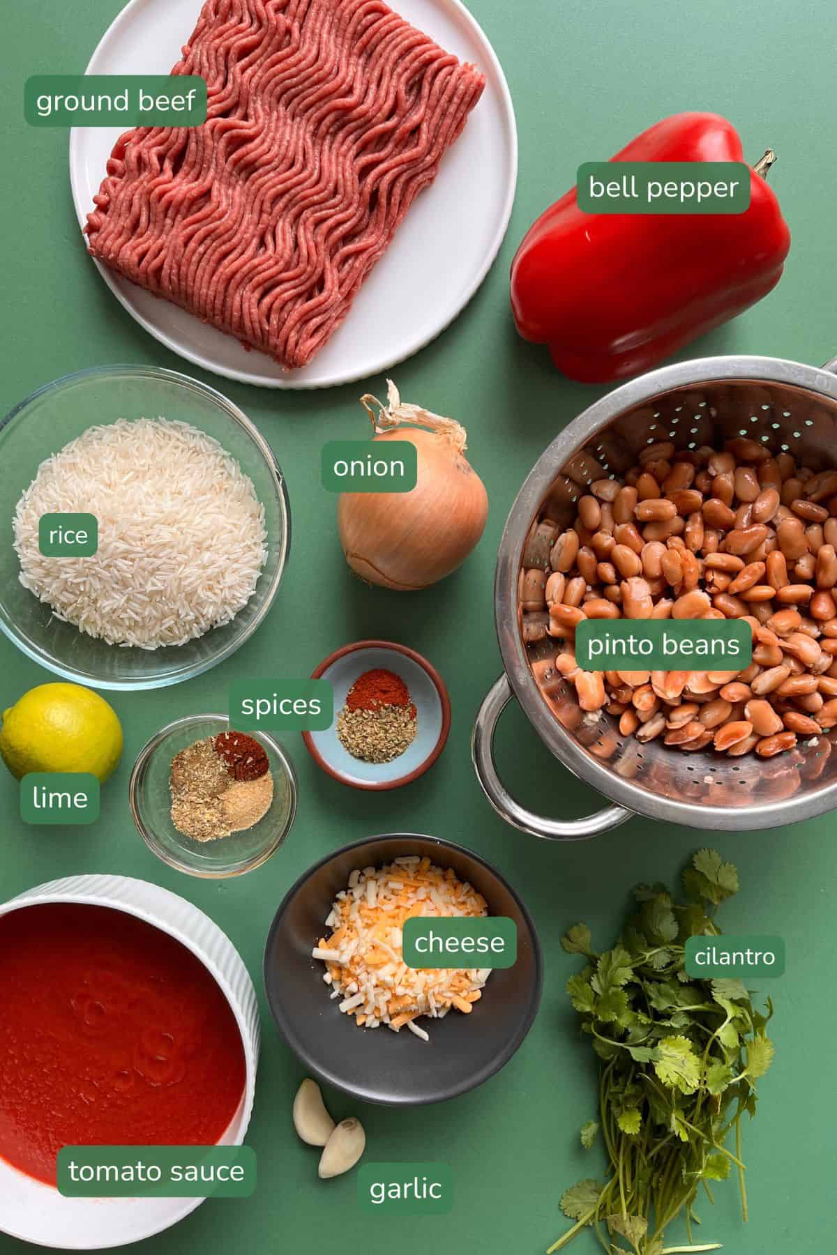 Spices: this recipe calls for chili powder, coriander, cumin, oregano, sweet paprika and onion powder,